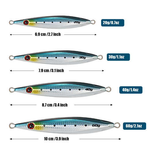 JIGGING PRO Long Cast Metal Jigs Fishing Bait 20g 30g 40g 60g Slow Blatt Cast Wide