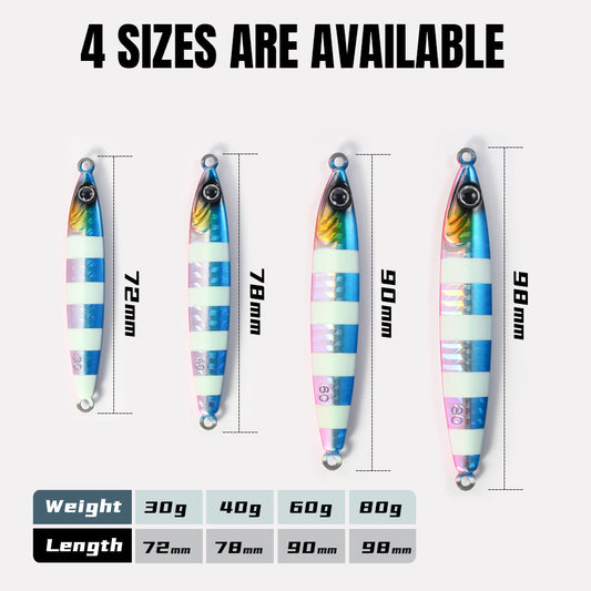 JIGGING PRO Salterwater Metal Jig Slow Fall Luminous Fishing Bait 60g 80g 100g 120g 160g