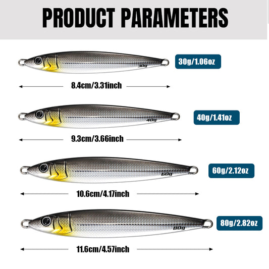 JIGGING PRO Long Cast Metal Jig Fishing Bait 40g 60g Slow Blatt Cast Slim