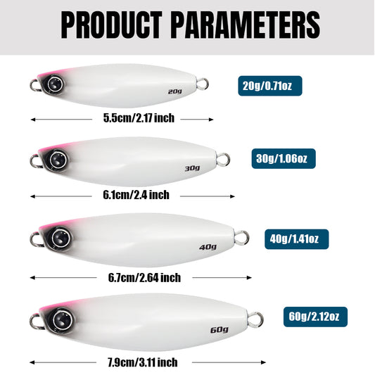 JIGGING PRO Shot Slow Wide Style Metal Jig - 20g/30g/40g/60g Shore Slow Lure Sea Fishing Bait